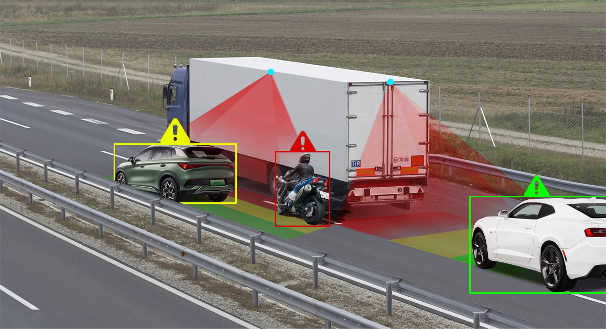 Large vehicles such as trucks, freight trucks, and buses have significant blind spots. When these vehicles are driving at high speeds and encounter motorcyclists changing lanes or pedestrians suddenly appearing during turns, accidents can occur easily.