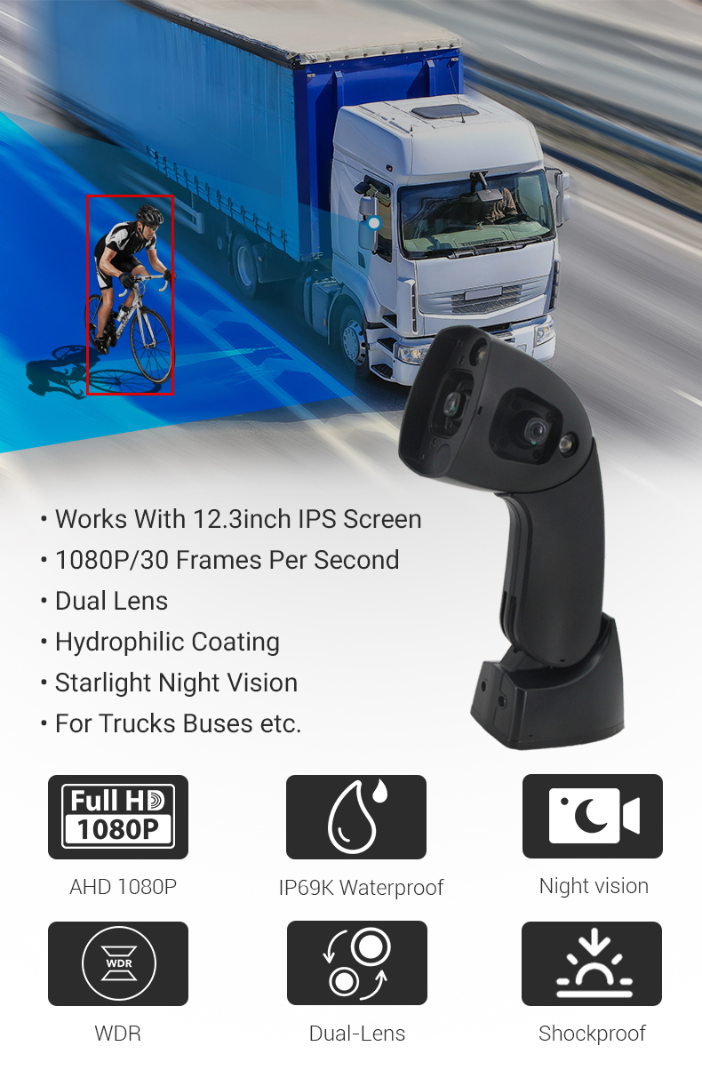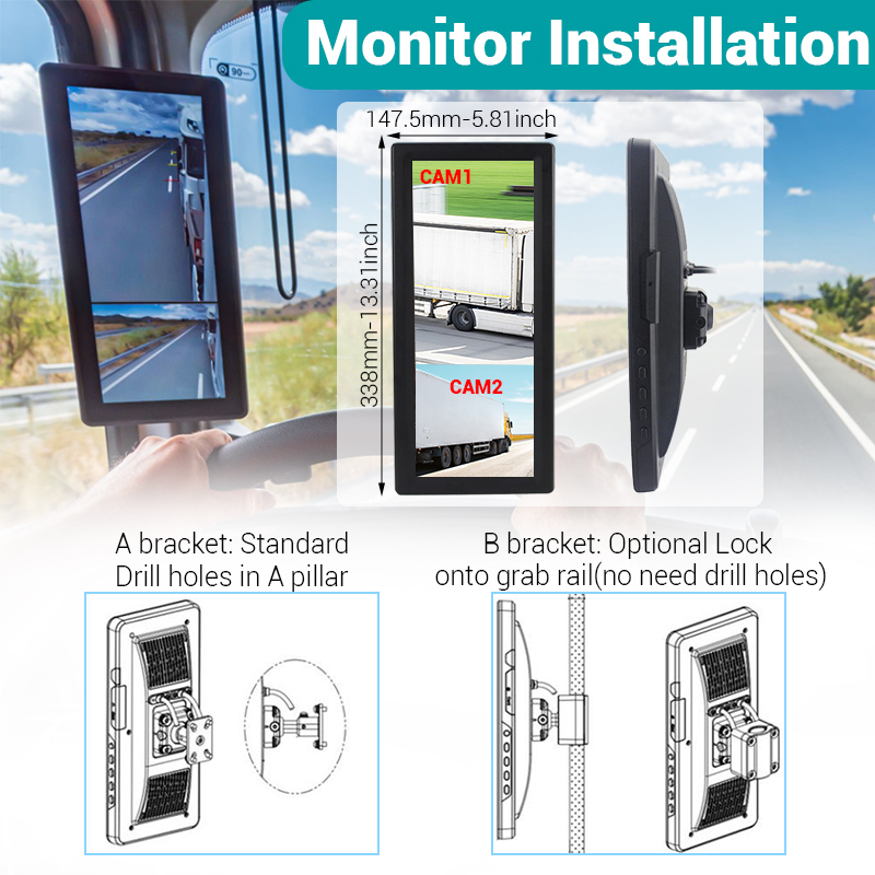 12.3 inch HD Dual Screen Electronic Mirror Monitor for Trucks and Buses Blind Spot Monitoring