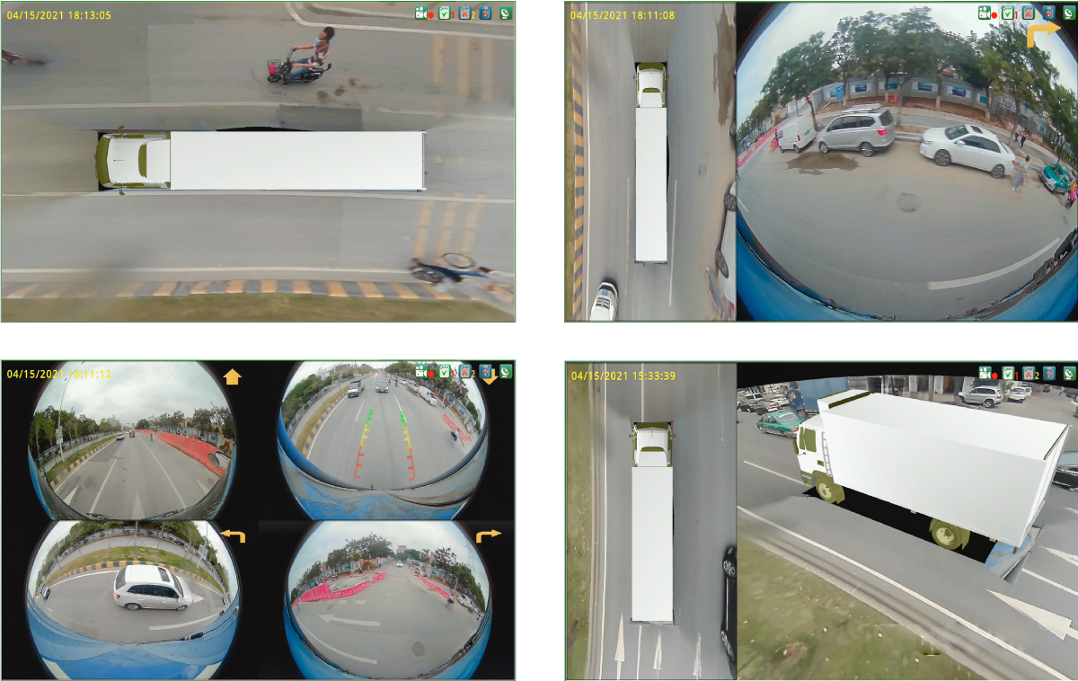 360° Around View Driving Assistance System provides a true 360° panoramic bird-view, monitoring with no blind spot to ensure driving safety. It adopts panoramic image synthesis technology, which can simulate a 3D real driving scene. It features easy installation and automatic calibration which is specially designed for transportation such as truck, bus, emergency vehicles. Combining with radar detection system, it can greatly improve driving security.