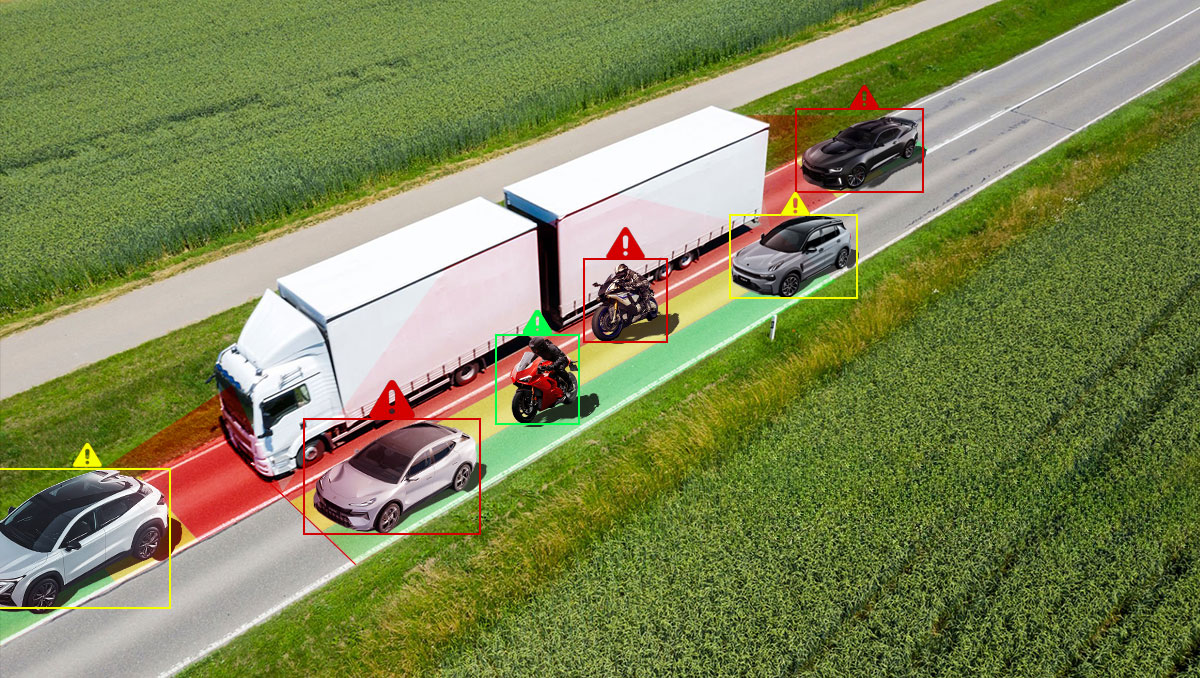 Large vehicles such as trucks, freight trucks, and buses have significant blind spots. When these vehicles are driving at high speeds and encounter motorcyclists changing lanes or pedestrians suddenly appearing during turns, accidents can occur easily.