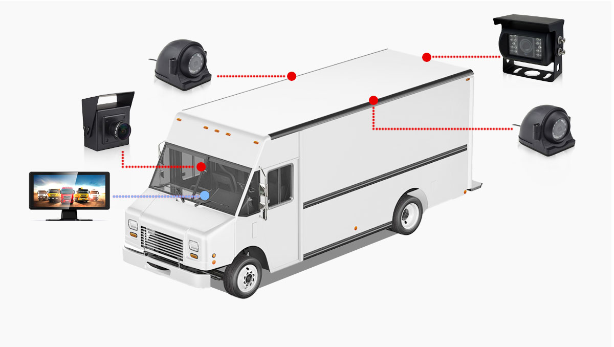 The cameras use a wide angle lens, achieving a horizontal angle of 140-150 degrees. This offers user a broader range for monitoring blind spots.