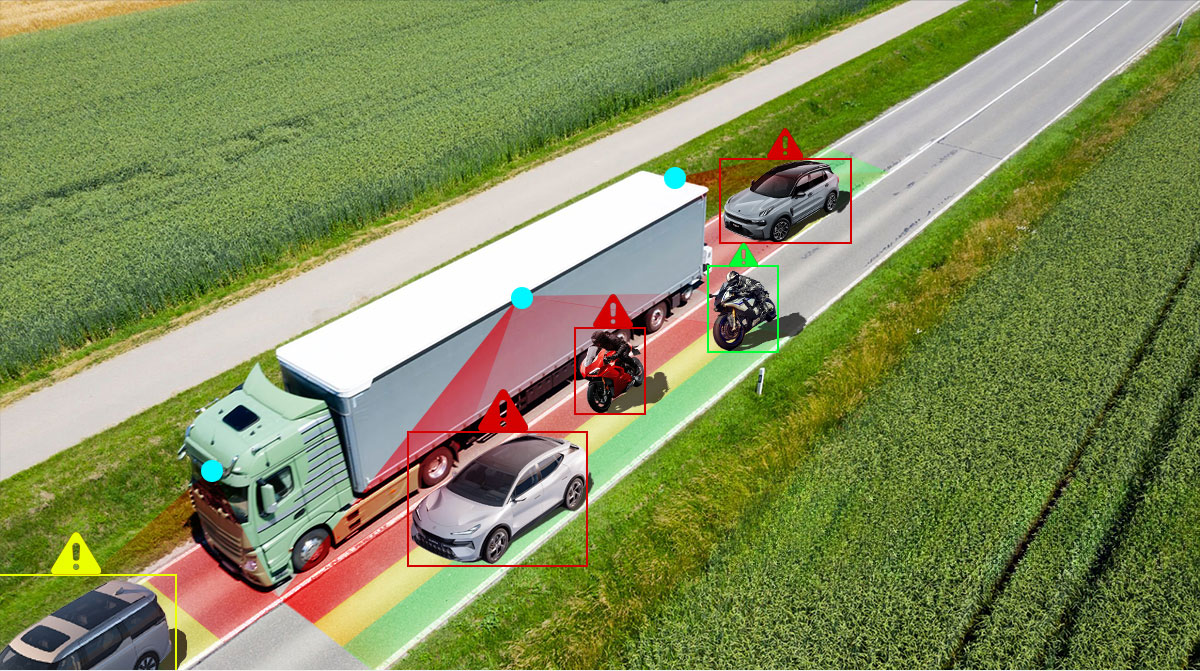 Large vehicles such as trucks, freight trucks, and buses have significant blind spots. When these vehicles are driving at high speeds and encounter motorcyclists changing lanes or pedestrians suddenly appearing during turns, accidents can occur easily.