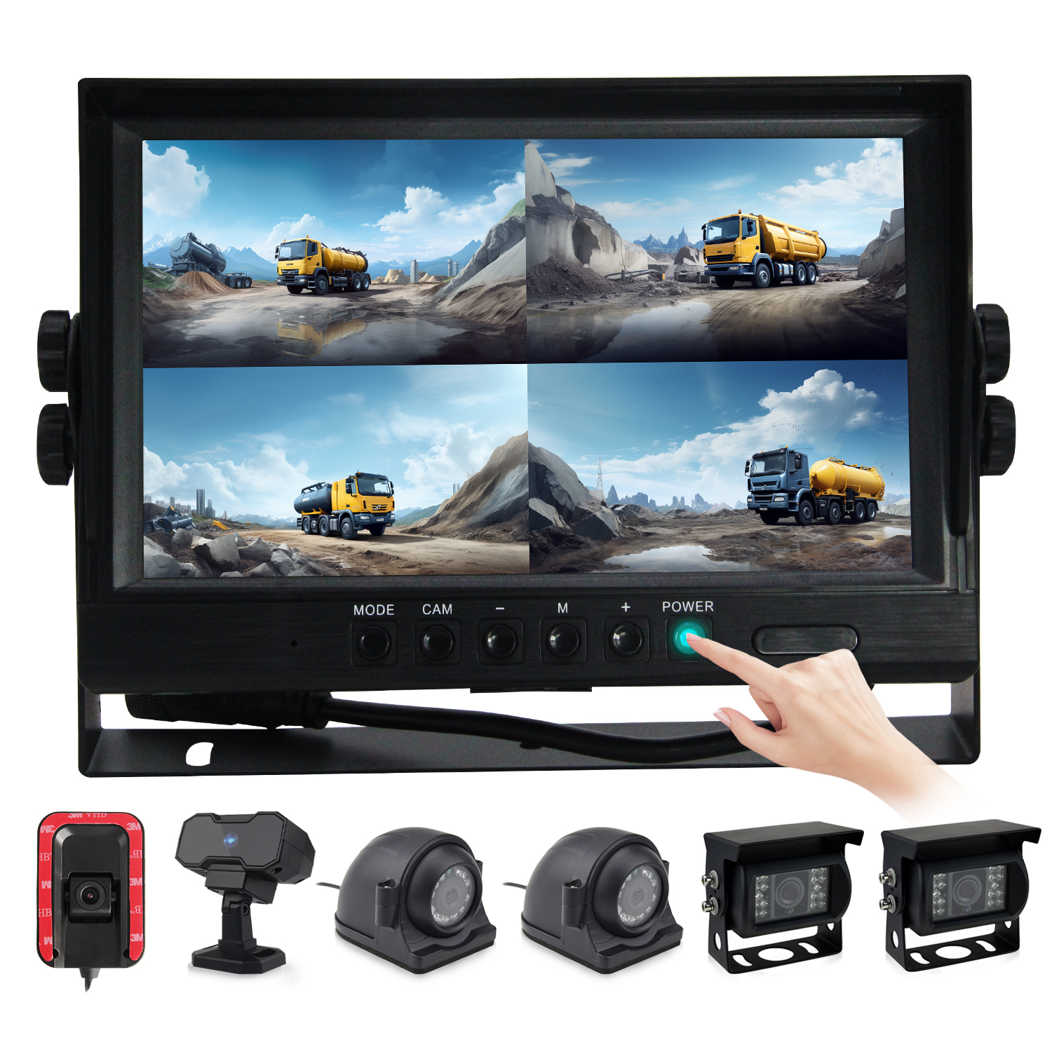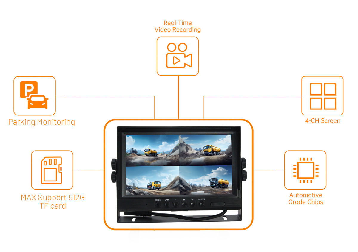 ▪AI Warning: AI camera sends out a warning signal, triggering the monitor’s built-in buzzer alarm and LED strobe light alarm on the monitor to remind the driver to pay attention to safety.