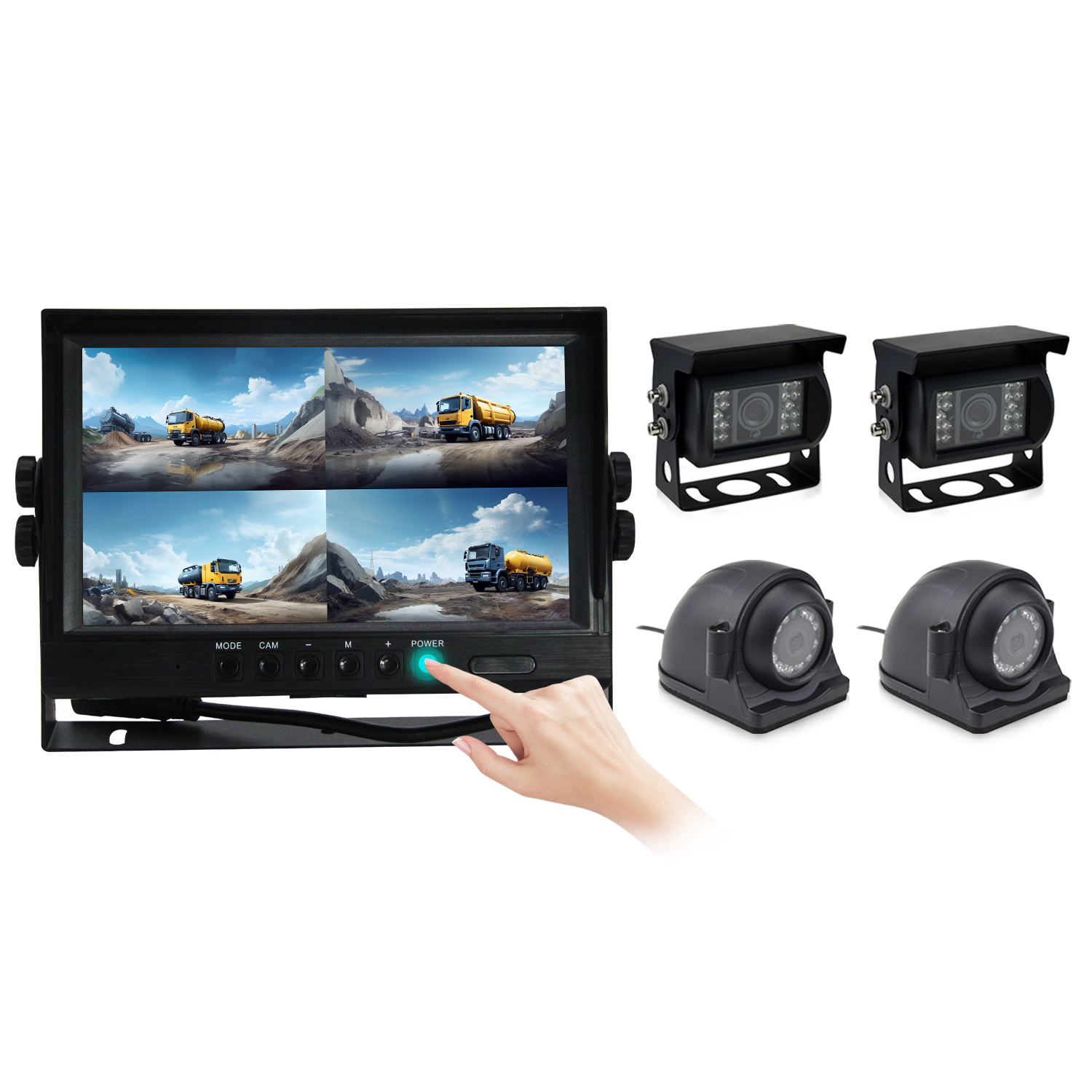The cameras use a wide angle lens, achieving a horizontal angle of 140-150 degrees. This offers user a broader range for monitoring blind spots.