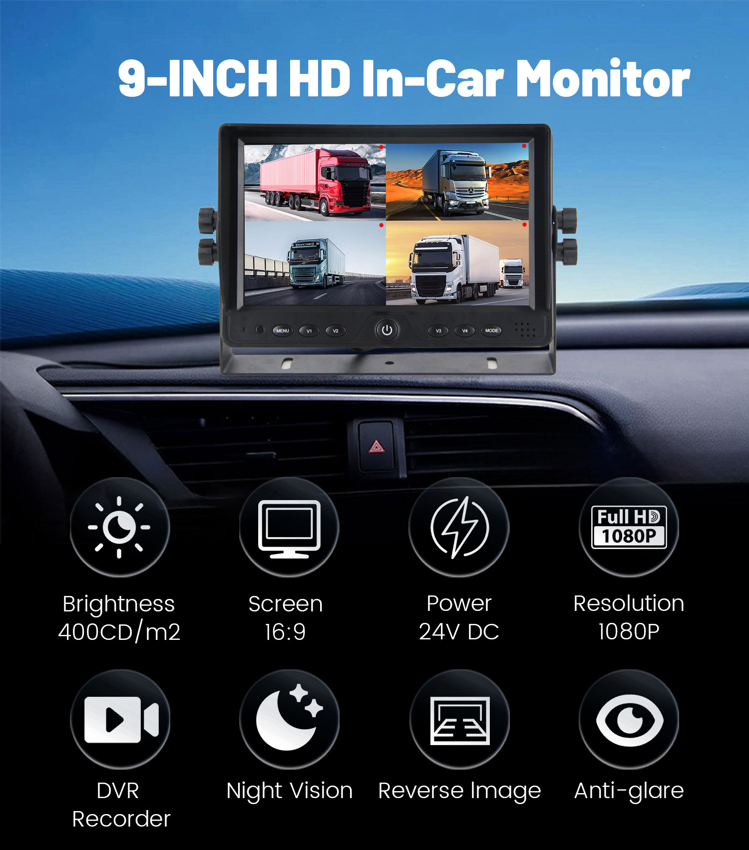 1. 9 INCH 1080P monitor with wide angle view and high resolution display.