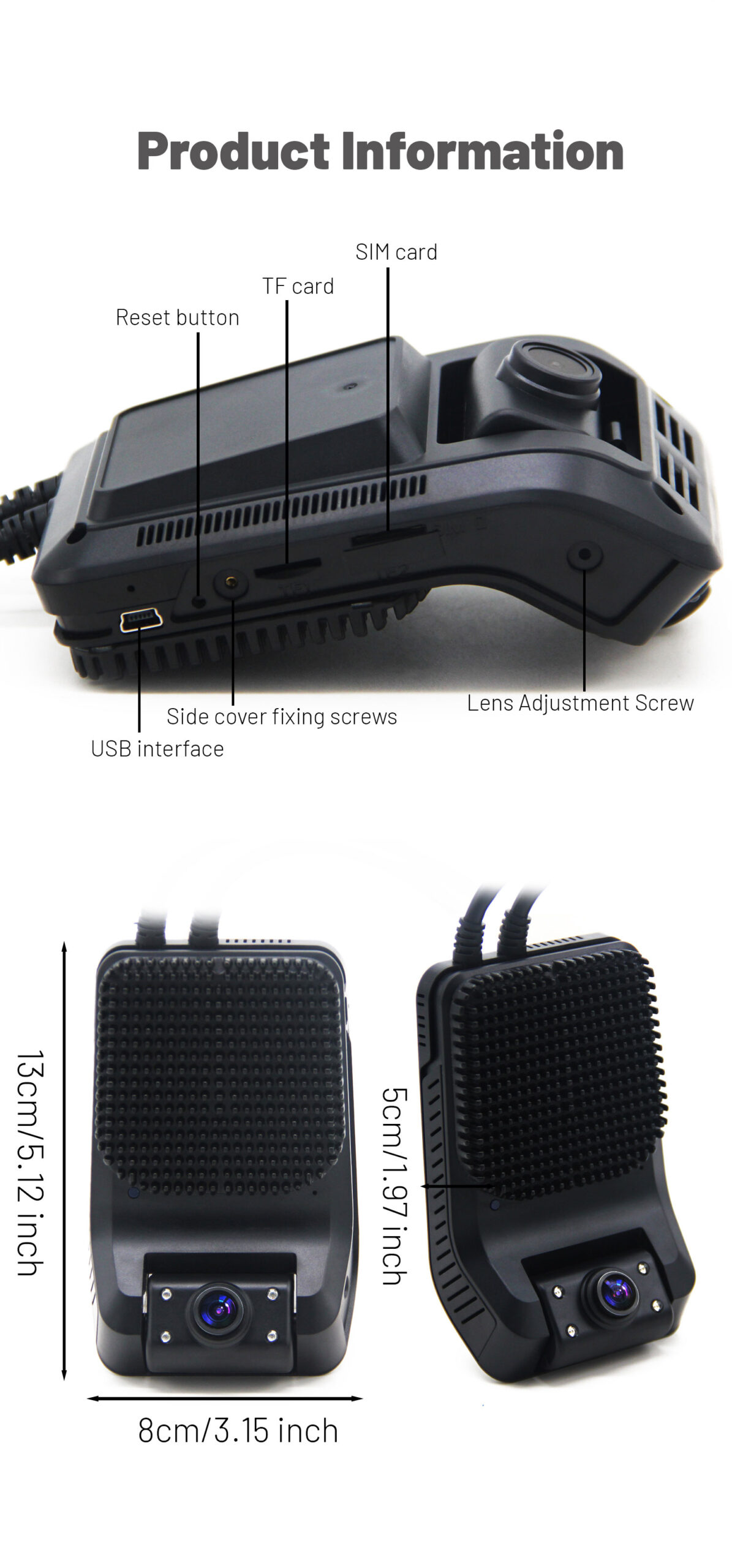 NIGHT VISION, Remote Control, G-Sensor, park MODE, motion detection, APP Control, Voice Interaction, Build-in GPS, Build-in GSM, Emergency Accident Lock, Build-in Battery, Andriod OS, ADAS