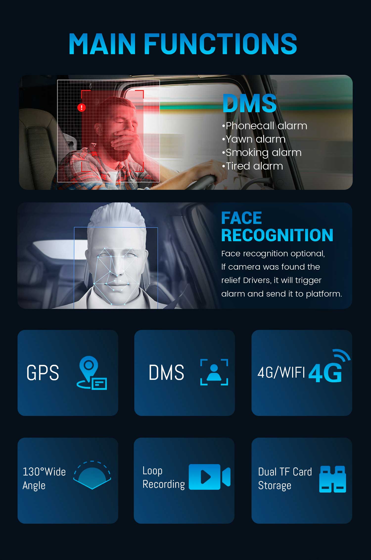 Sync vehicle location/mileage/speed data via 4G/WiFi, receive overspeed alerts on our fleet management platform (ISO 27001 certified).