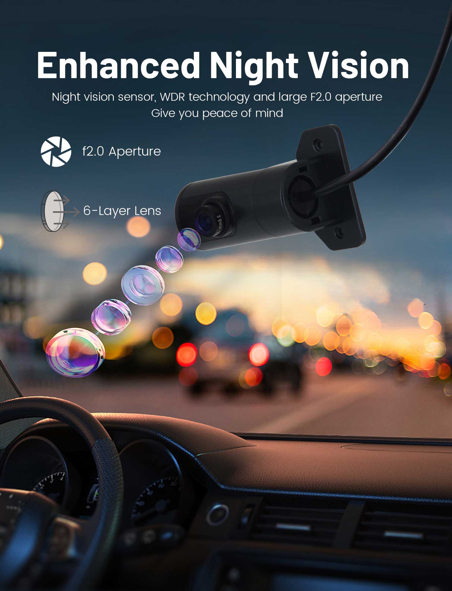 Simultaneously monitor front/rear/interior views with 130° wide-angle lenses, capturing license plates & passenger behaviors in crystal clarity.