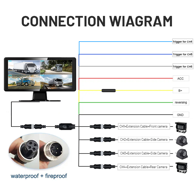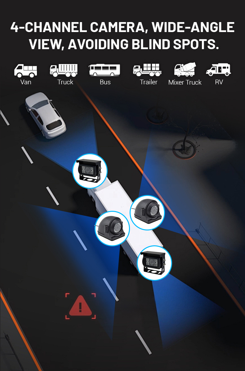 Application: Reversing Camera Monitor System for for Trucks, Buses, Farm Tractor, Heavy Equipments, Fork-lifts , RVs, Security Escorts, Airport Vehicles