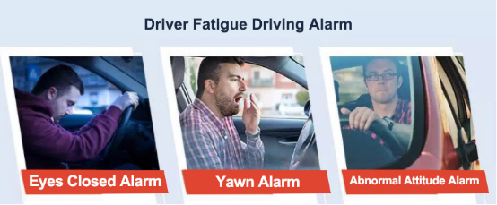 The fatigue driving monitoring system realizes the following functions. When it is detected that the driver is fatigued, yawns, makes a phone call, drinks water, smokes, or is inattentive, it will give a voice prompt to the driver. At the same time, it outputs 5V high level through the IO interface, and the serial port outputs the alarm result command, which can be connected to the car video recorder or other equipment.