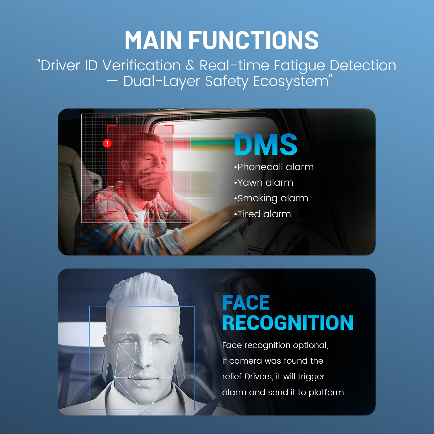 1080P DMS Camera with Night Vision & Fatigue Alert for Taxi, Ride-Hailing, Commercial Vehicles