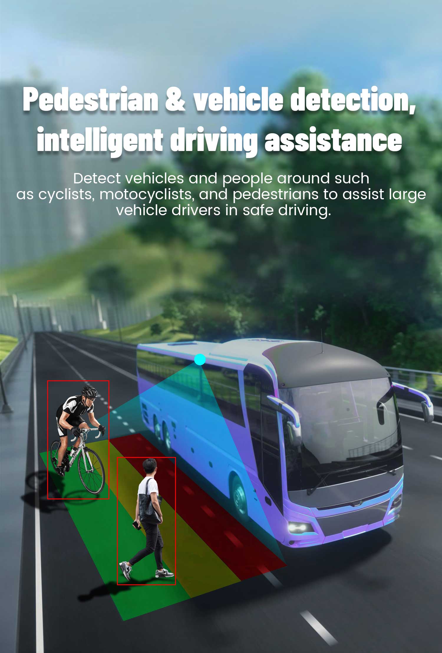 • AI Dual Detection: Accurately identifies pedestrians and vehicles in real-time using deep learning algorithms, reducing accident risks by 90%.