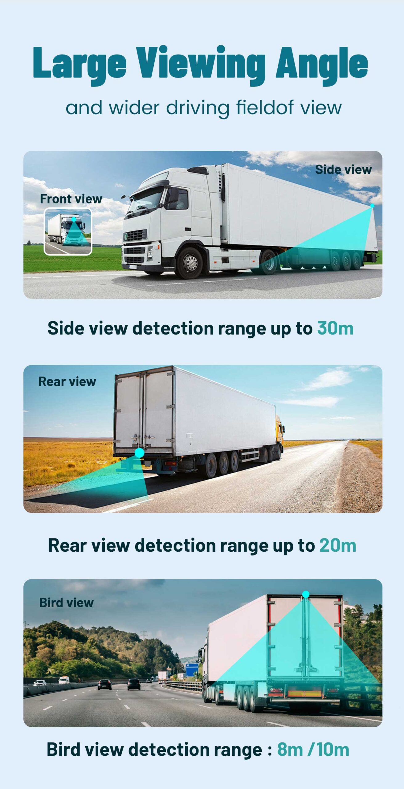 •Multi-Scenario Adaptability: Perfect for urban driving, highway logistics, reversing maneuvers, and narrow lanes – ideal for trucks, buses, and private cars.