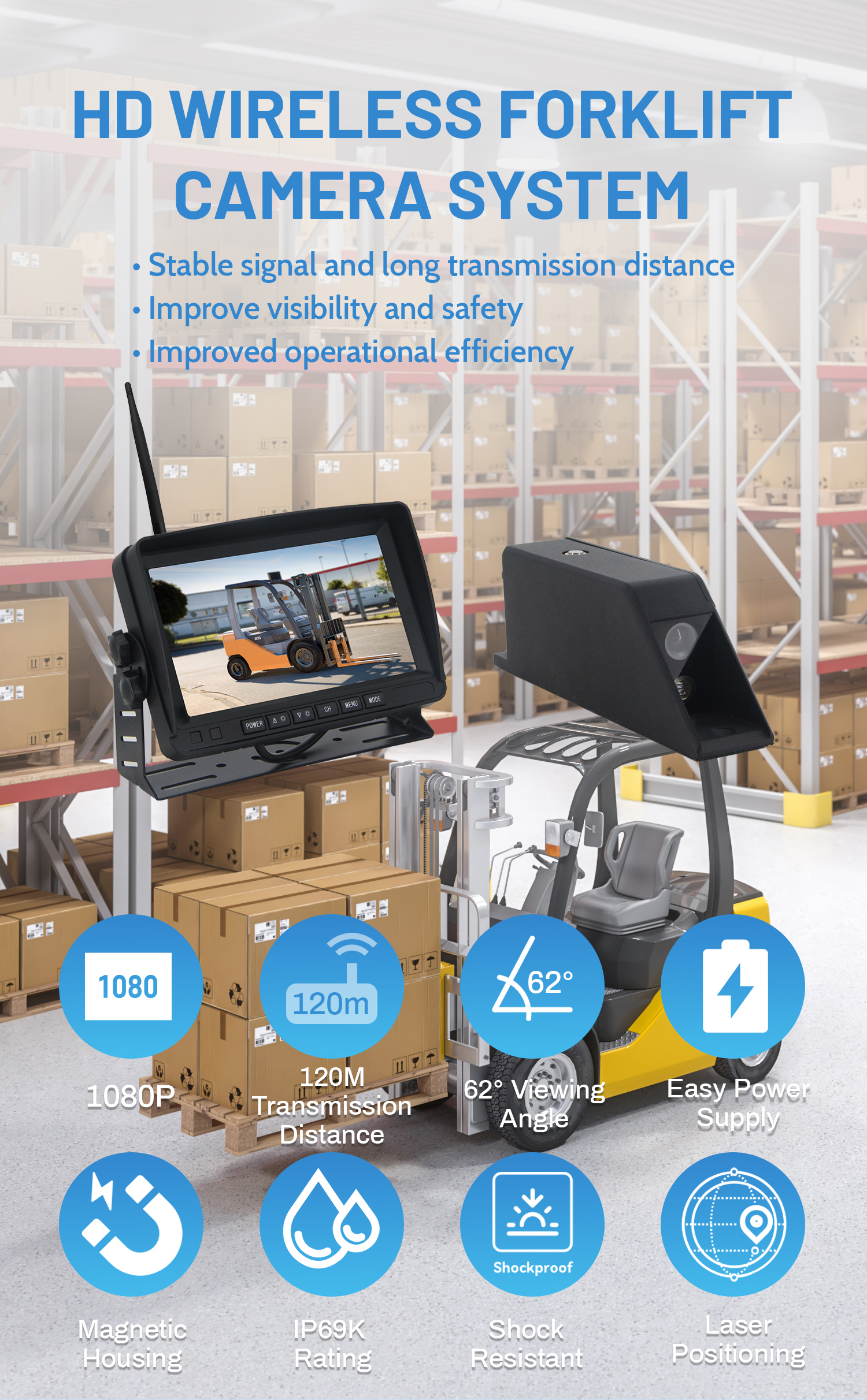 Introducing the essential 7 Inch Wireless Forklift Reversing Camera System. Eliminate blind spots and prevent accidents with crystal-clear rear vision, designed for tough industrial environments.