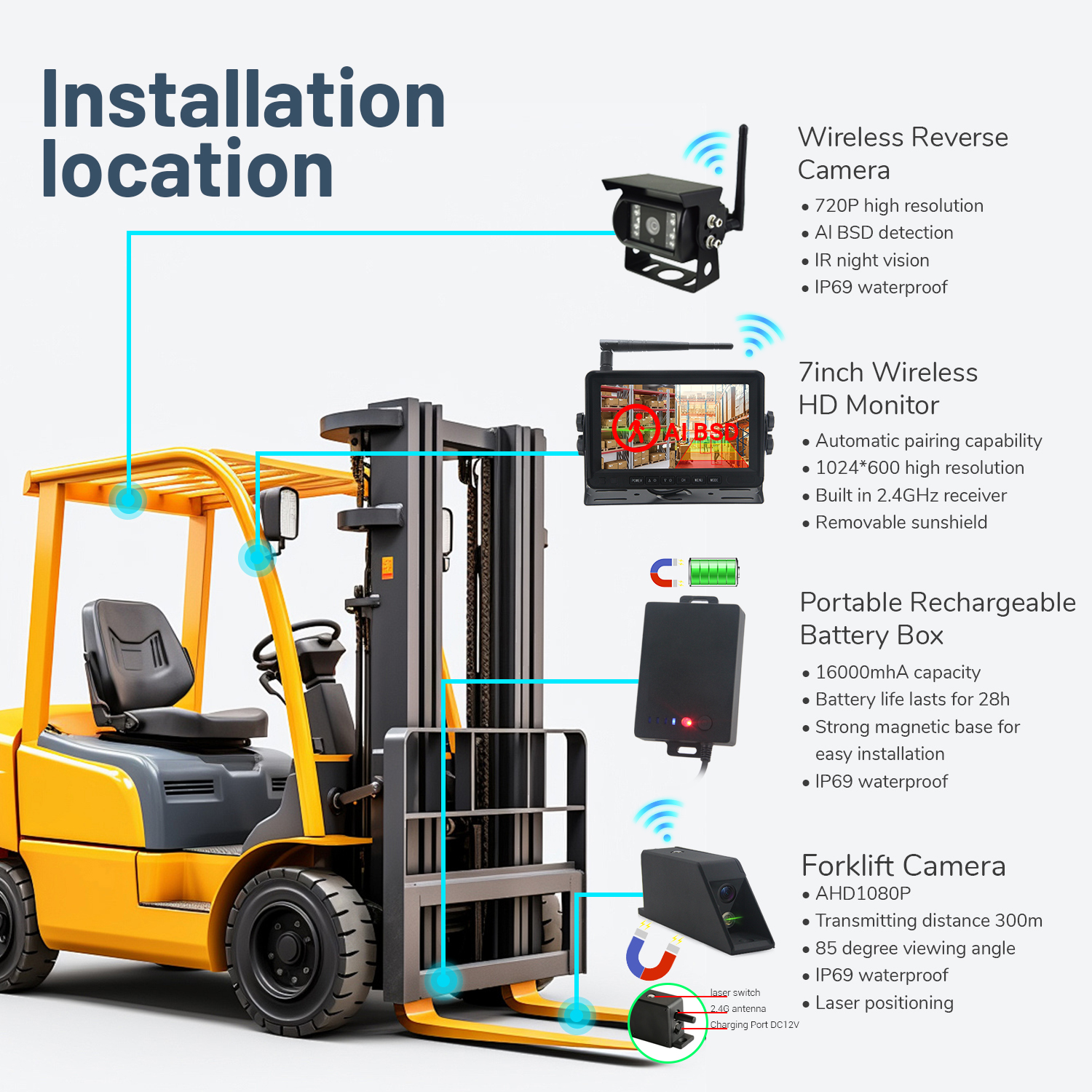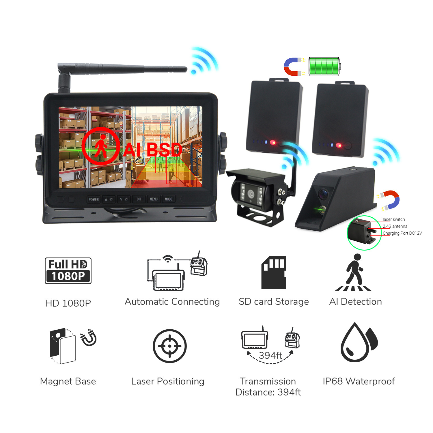 1) 7-inch LCD thin-film transistor high-definition display wireless monitor, supporting artificial intelligence BSD pedestrian blind spot detection