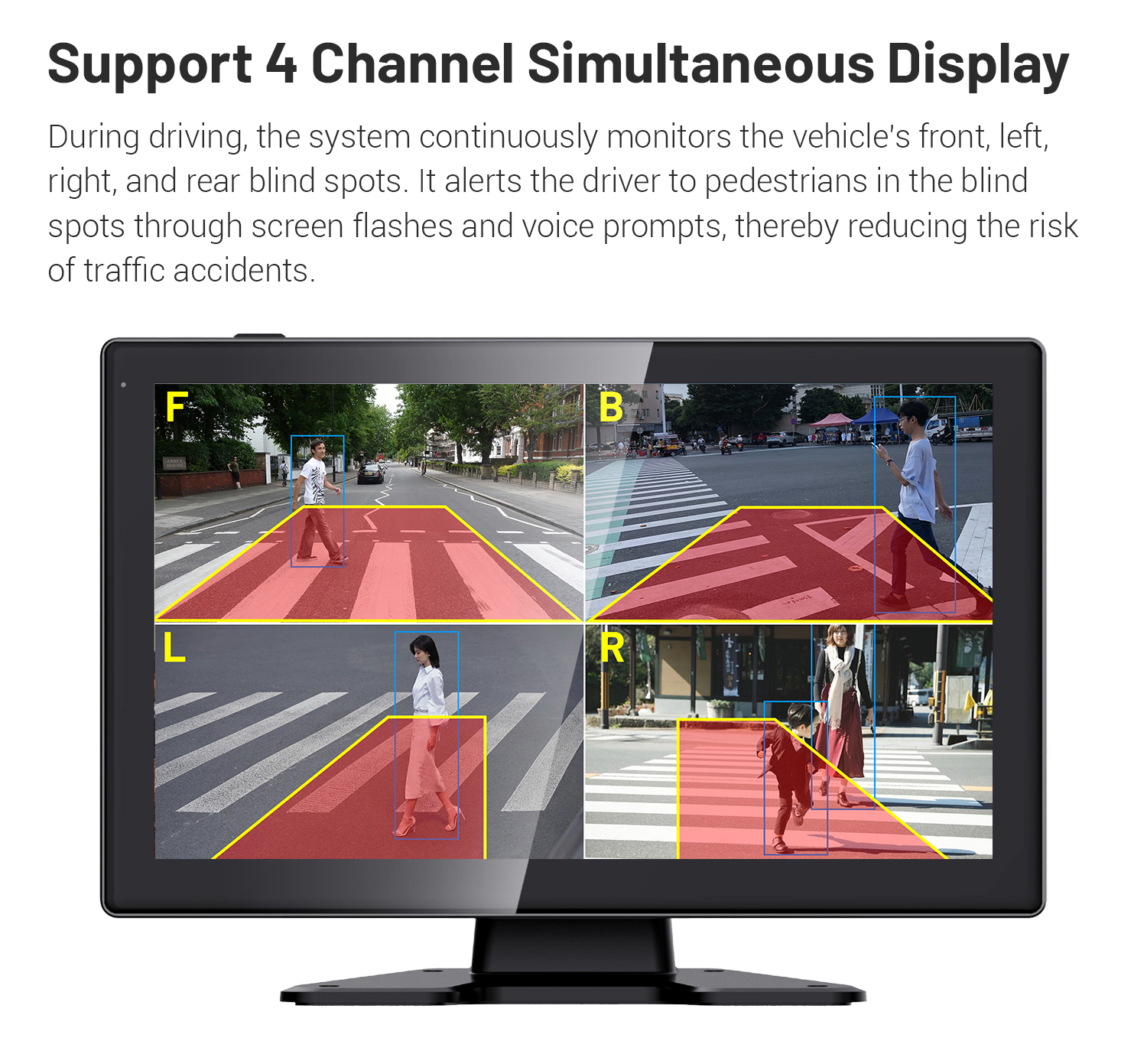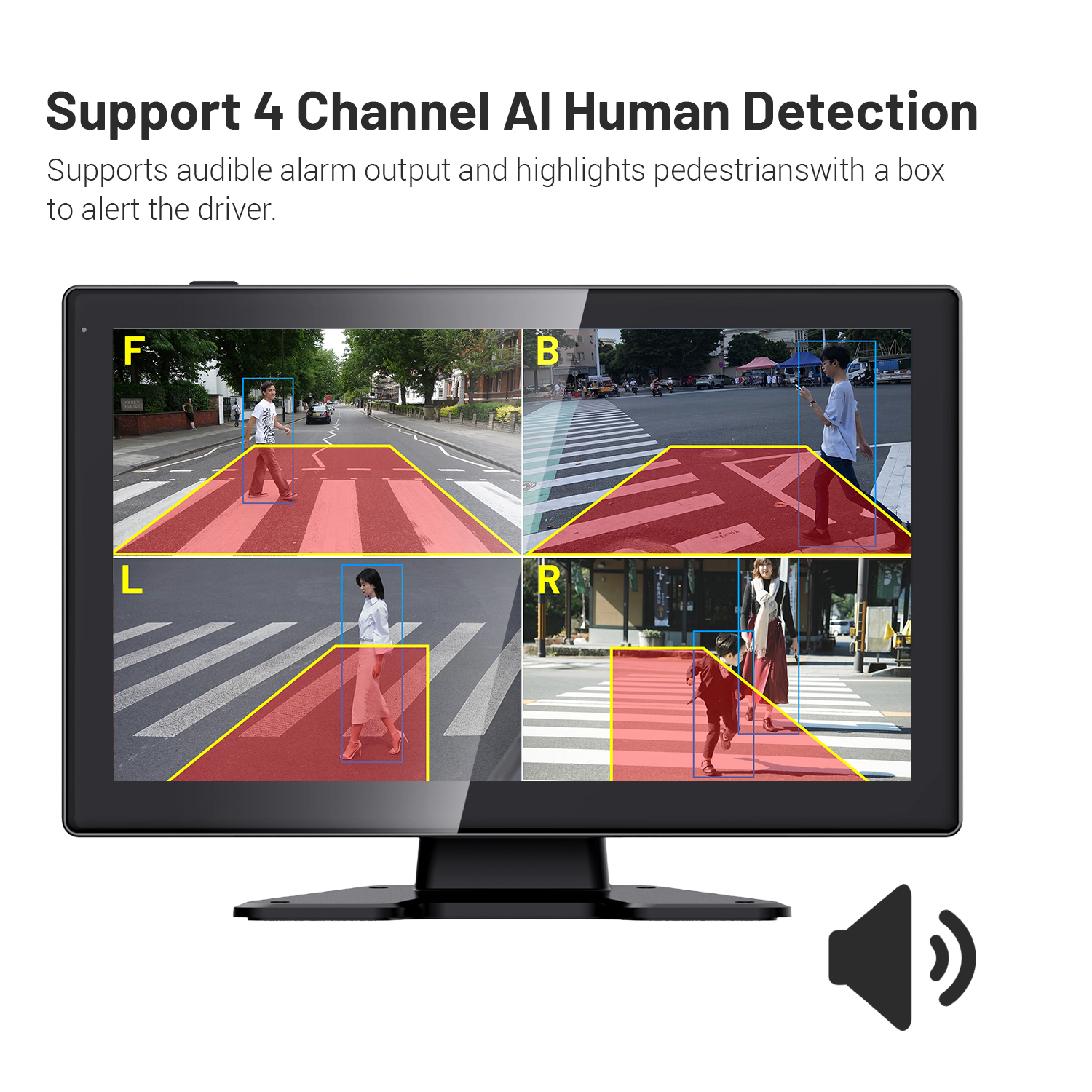 10.1 Inch LCD Monitor 24V Truck Backup Reverse Camera System with IP68 Waterproof Camera, 4CH BSD